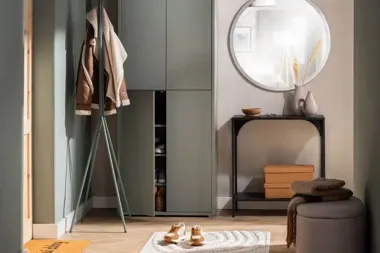 Aby zachować spójność aranżacji, najlepiej jeśli wszystkie sprzęty, takie jak szafy, wieszaki, półki na buty i siedziska, kupisz w jednym miejscu. Zwróć też uwagę na dodatki, które pomogą Ci uporządkować dobytek, oraz rozmaite dekoracje, dzięki którym ta przestrzeń nabierze charakteru i wyrazi Twoje ja. Strefa wejściowa do domu nie musi być tylko użyteczna – nawet w najmniejszym przedpokoju czy wiatrołapie na pewno znajdzie się kawałek miejsca na ciekawy plakat, rodzinne zdjęcie albo ozdobny stojak na biżuterię, którą zakładasz codziennie. A może podkreślisz swój styl, montując niebanalny wieszak na klucze lub lustro w szalonej ramie?