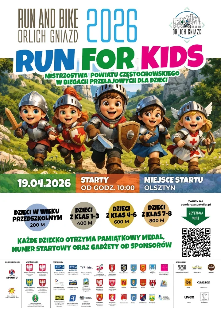 Run for Kids odbędzie się w niedzielę, 19 kwietnia 2026 roku, w Olsztynie koło Częstochowy , w okolicach rynku i biura zawodów. Formuła jest czytelna – zamiast długich tras są krótkie odcinki dopasowane do wieku i możliwości uczestników. To ważne zwłaszcza dla rodzin, które szukają nie tylko sportowej rywalizacji, ale też bezpiecznego, dobrze zorganizowanego wydarzenia na świeżym powietrzu.