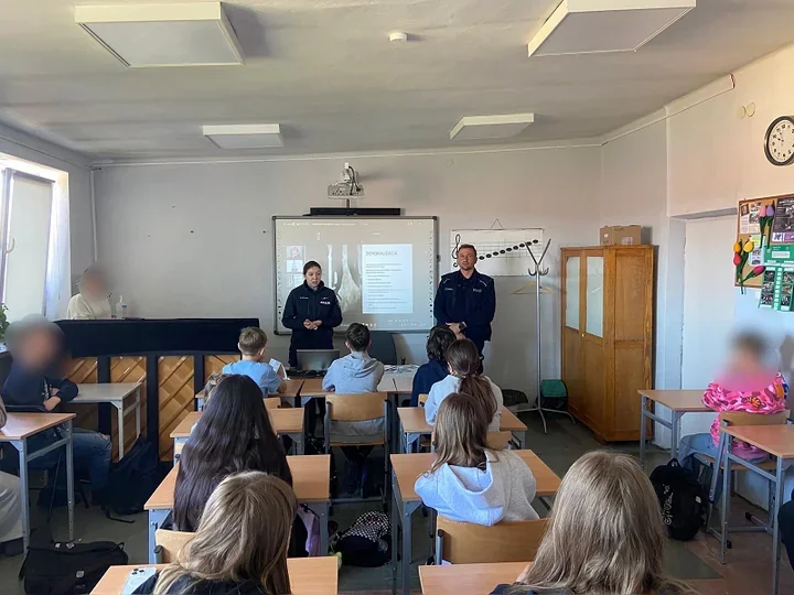 Funkcjonariusze poruszyli również temat presji rówieśniczej. Mówili o tym, jak odmawiać, gdy ktoś namawia do sięgnięcia po używki, i dlaczego w takich sytuacjach liczy się szybka, świadoma reakcja. Uczniowie usłyszeli też przykłady realnych zdarzeń, które miały pokazać, że to nie teoria, ale codzienny problem, z którym służby spotykają się naprawdę.